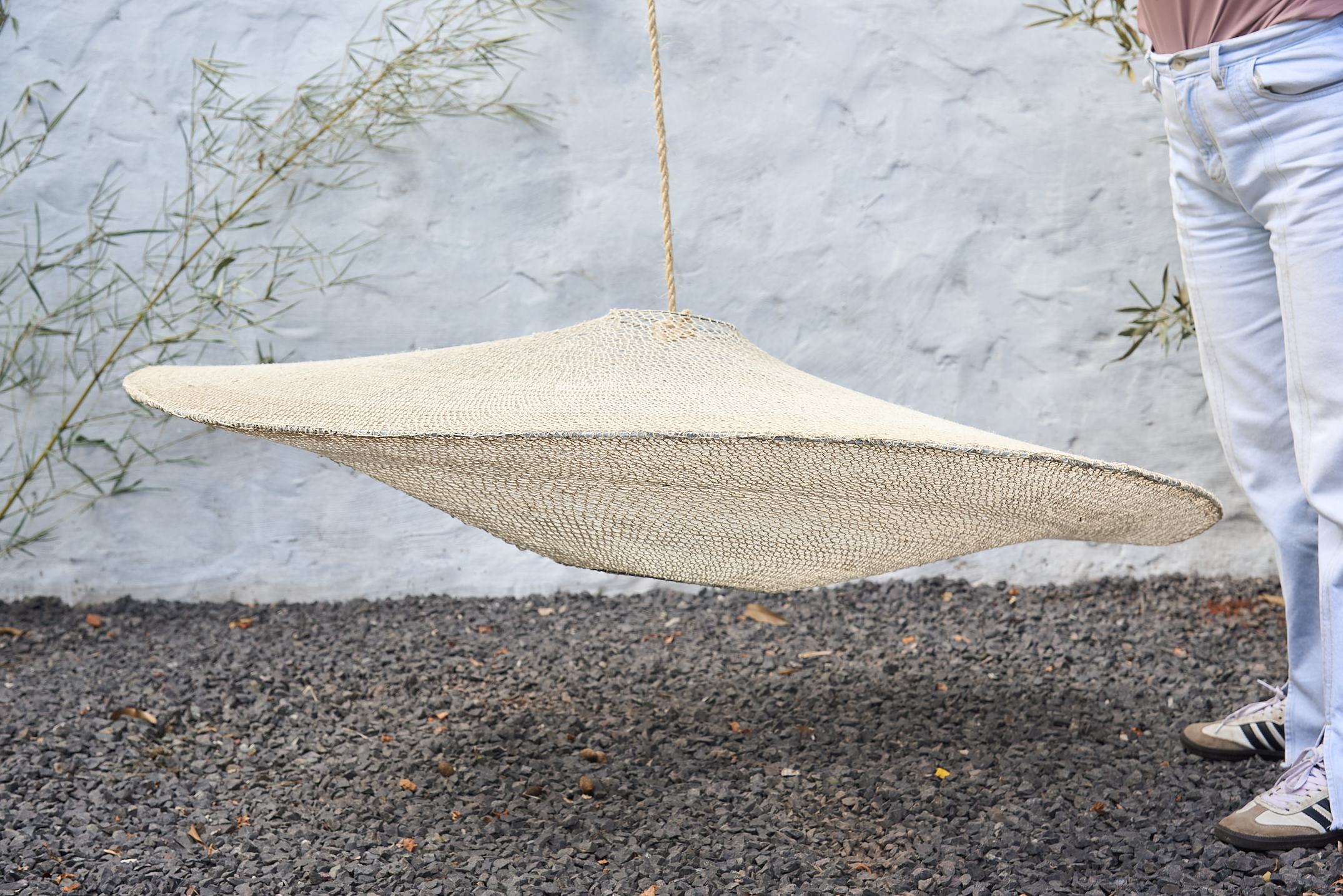 Tejida a mano con fibras de caraguatá por artesanos Nivaclé del Chaco paraguayo, esta lámpara combina tradición ancestral con una estética contemporánea.