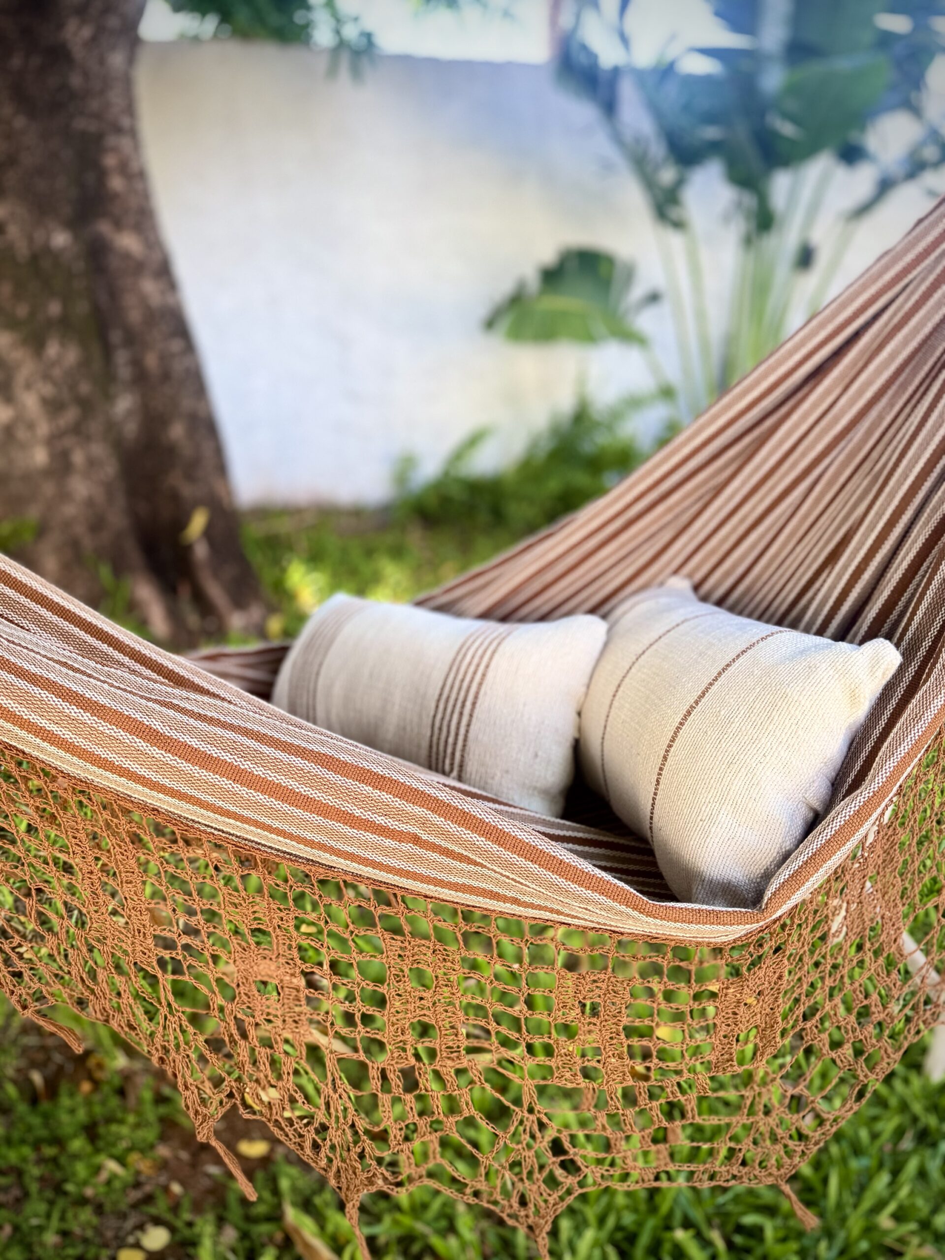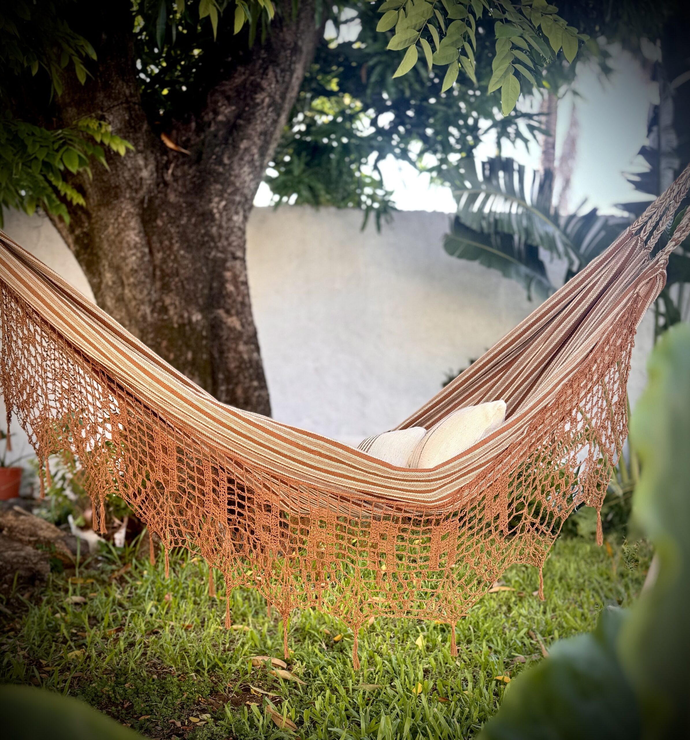 – Esta hermosa hamaca tradicional paraguaya hecha a mano es el lugar perfecto para la relajación y el confort. Puede acomodar hasta 2 personas y soportar hasta 130kg