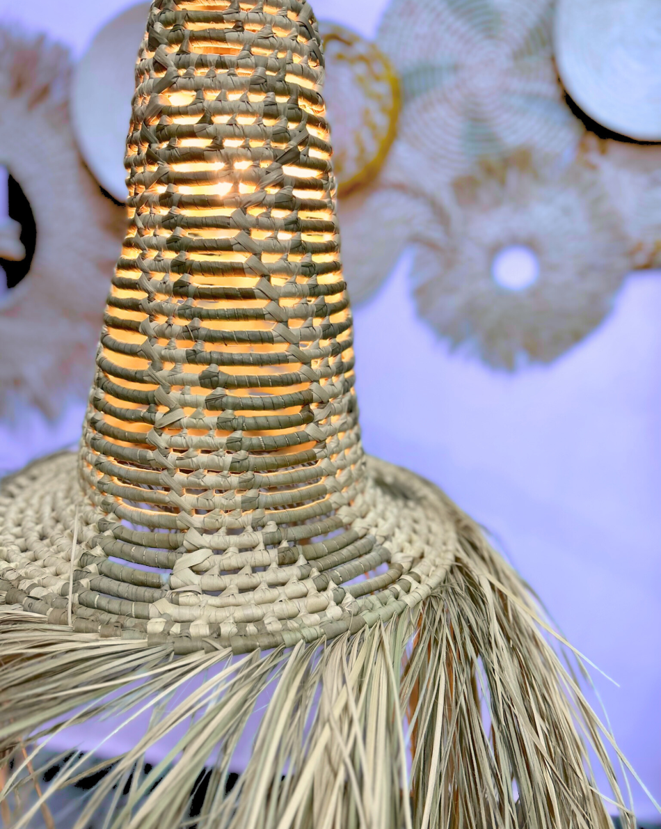 Cada lámpara artesanal es el resultado de un trabajo minucioso que fusiona tradición y contemporaneidad, ideal para quienes buscan un objeto de decoración sostenible, auténtico y con valor cultural. Perfecta para dar un ambiente cálido y acogedor en salas, dormitorios o espacios de lectura.