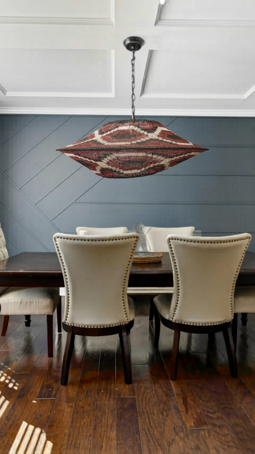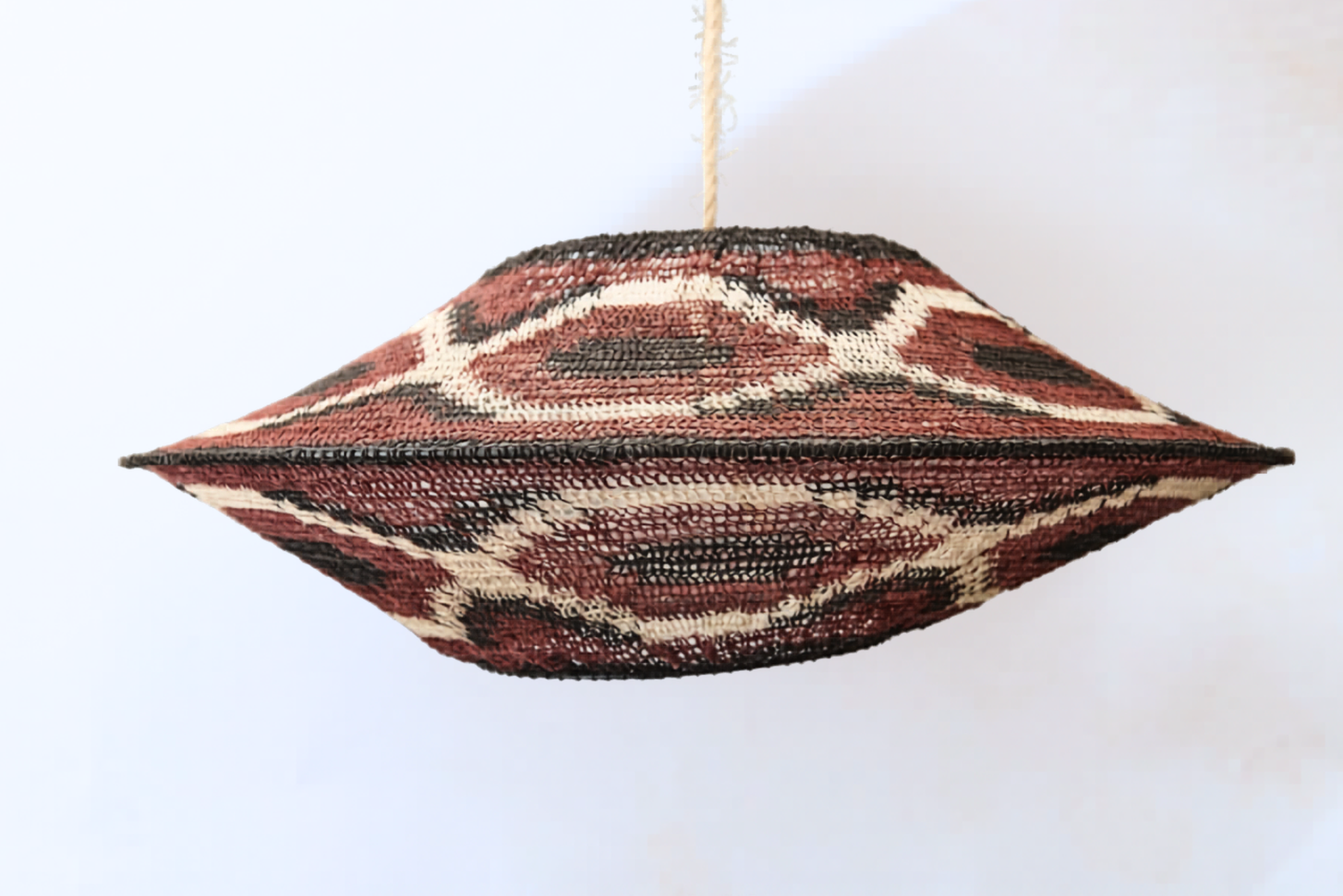 Pieza XL que celebra la artesanía y el diseño contemporáneo. Hecha a mano en fibras de caraguatá, cada lámpara es única e irrepetible.