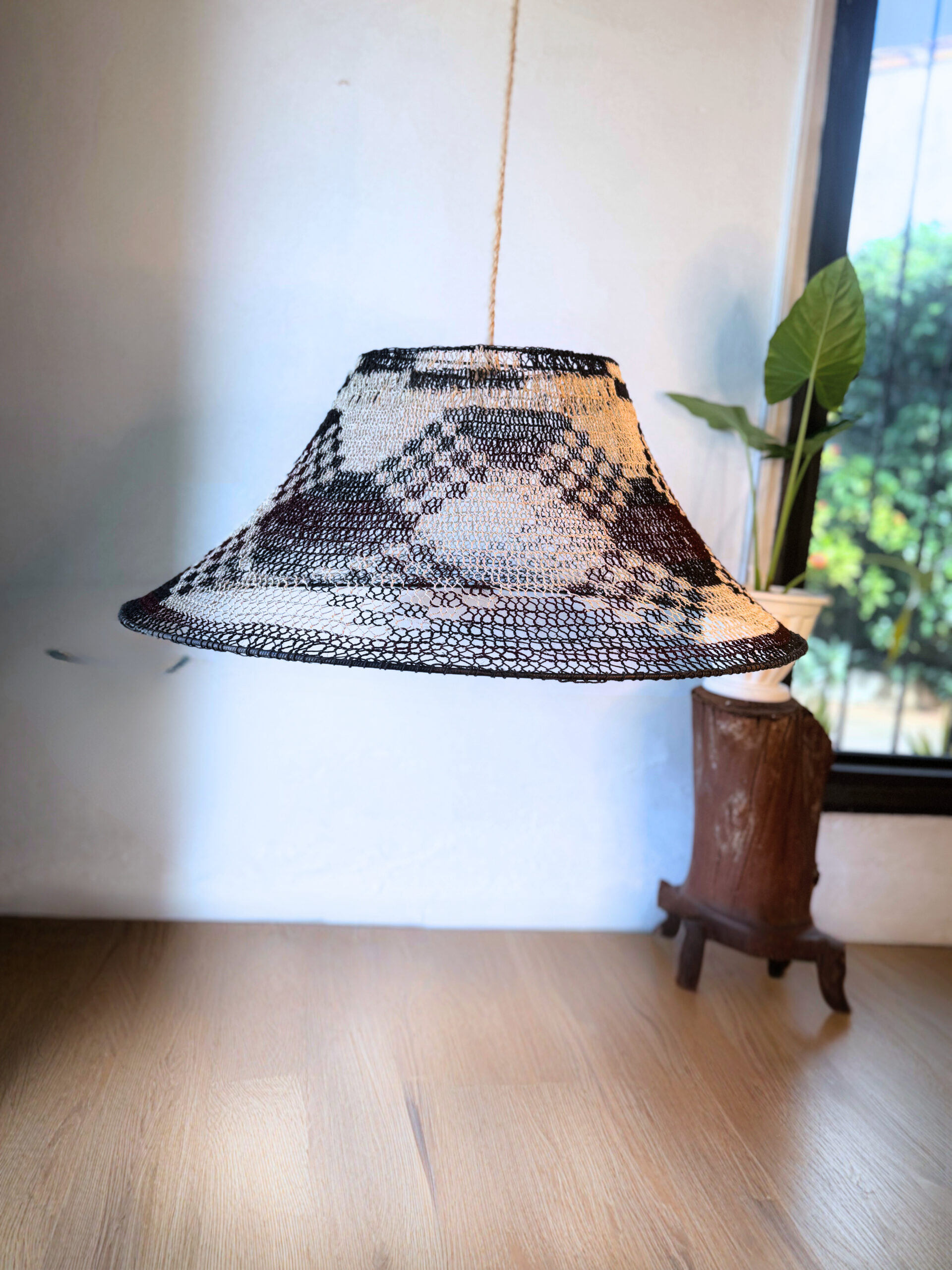 Lámpara colgante artesanal de caraguatá pensada para crear una atmósfera serena y envolvente. Su tejido más cerrado suaviza la salida de la luz, generando una iluminación difusa, cálida y contenida.