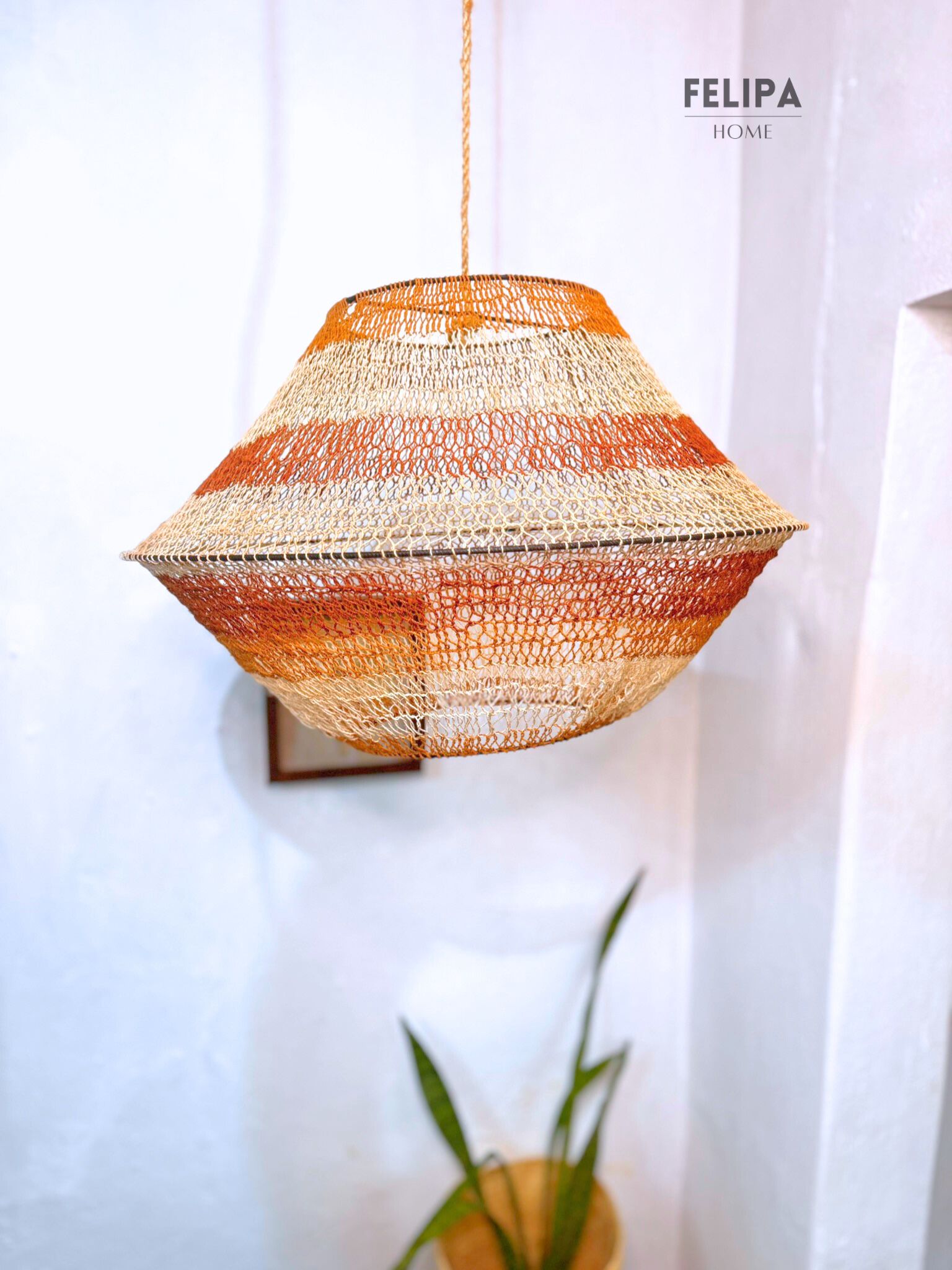 Con una medida de 60cm y un diseño versátil, esta lámpara se adapta a diferentes estilos de decoración: moderna, rústica, minimalista o bohemia. Su estructura permite integrarla fácilmente en cualquier ambiente, aportando textura, calidez y autenticidad.