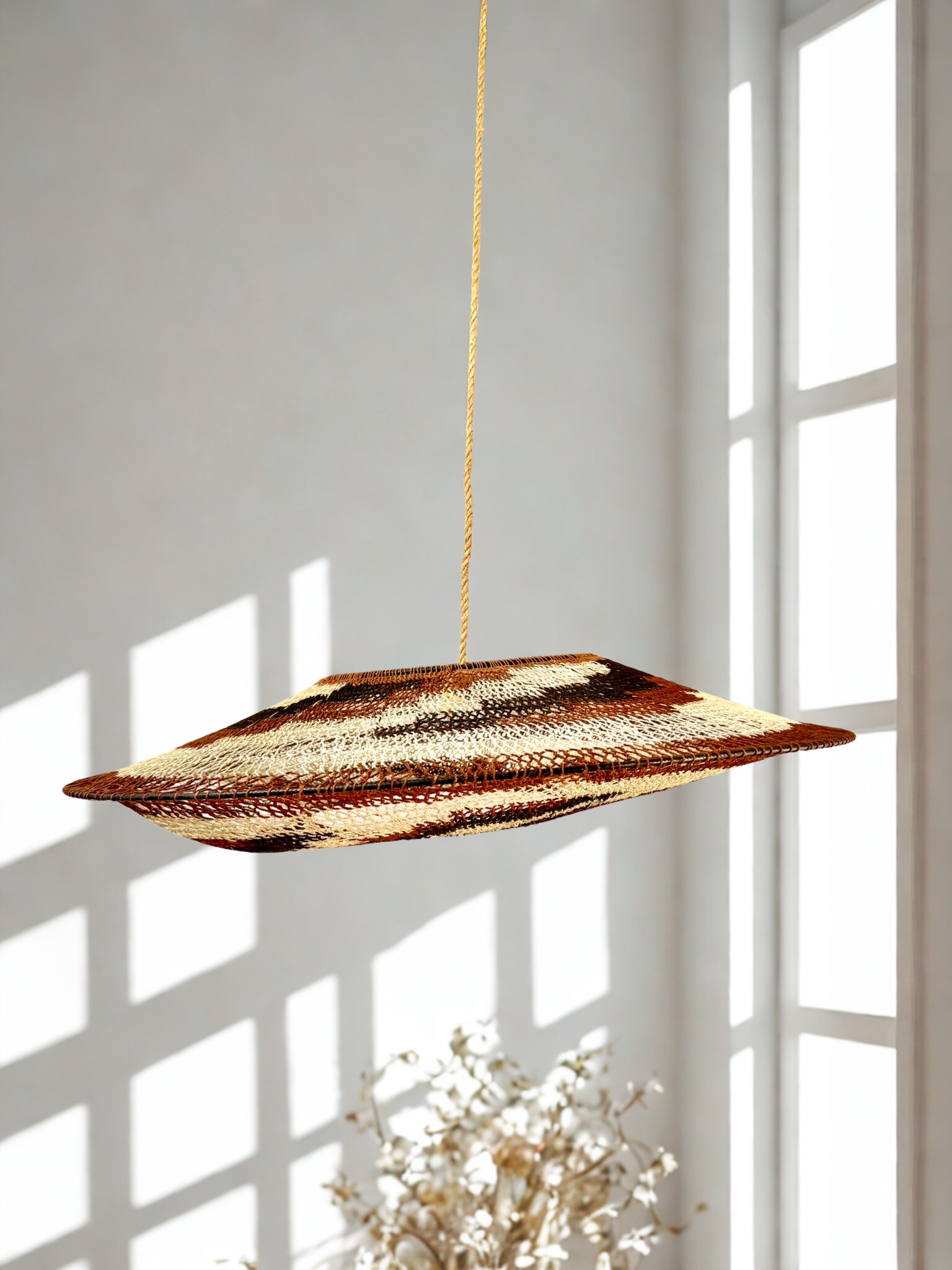 Con una medida de 80cm y un diseño versátil, esta lámpara se adapta a diferentes estilos de decoración: moderna, rústica, minimalista o bohemia. Su estructura permite integrarla fácilmente en cualquier ambiente, aportando textura, calidez y autenticidad.