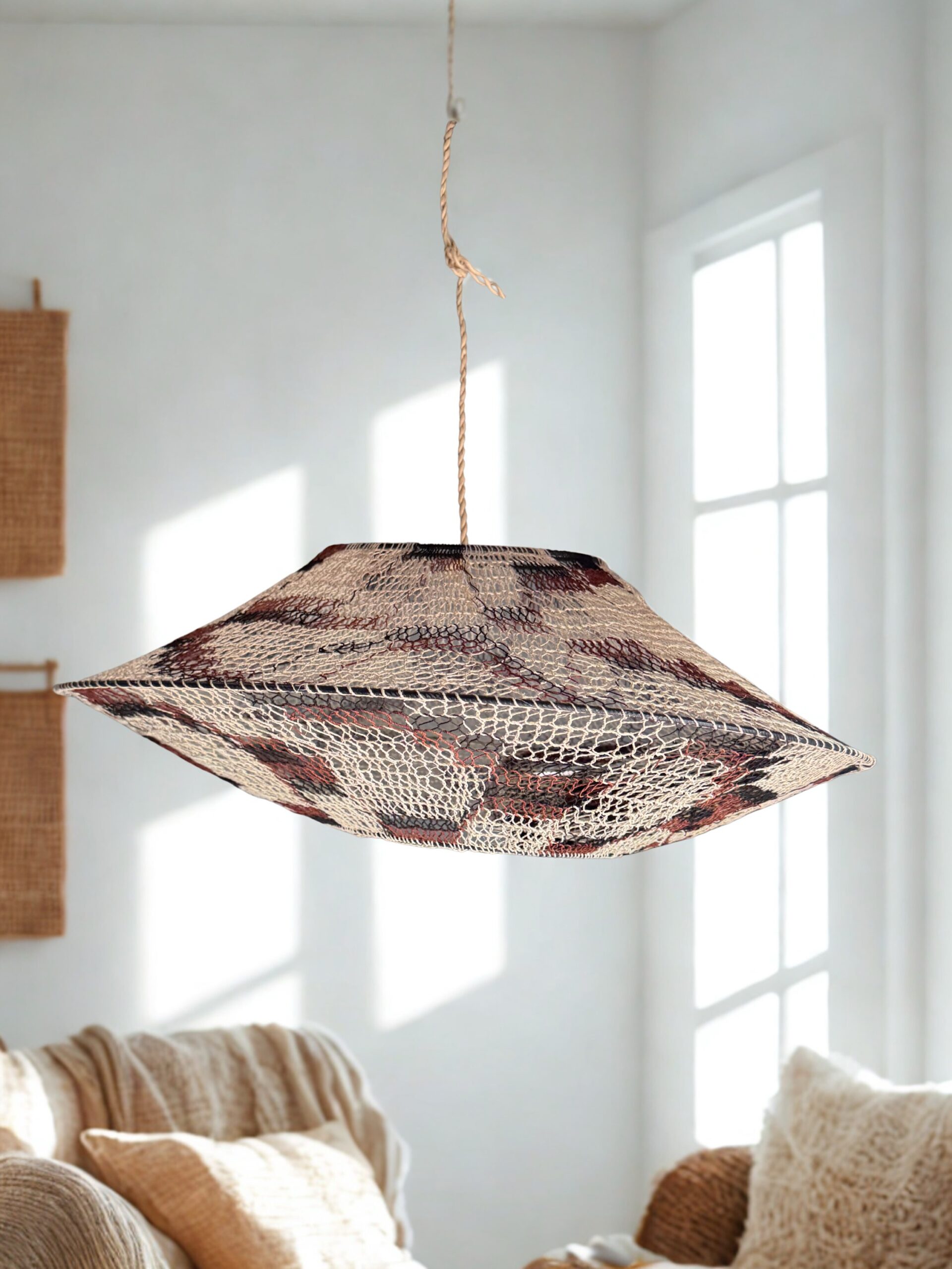 Con una medida de 80cm x 30cm y un diseño versátil, esta lámpara se adapta a diferentes estilos de decoración: moderna, rústica, minimalista o bohemia. Su estructura permite integrarla fácilmente en cualquier ambiente, aportando textura, calidez y autenticidad.