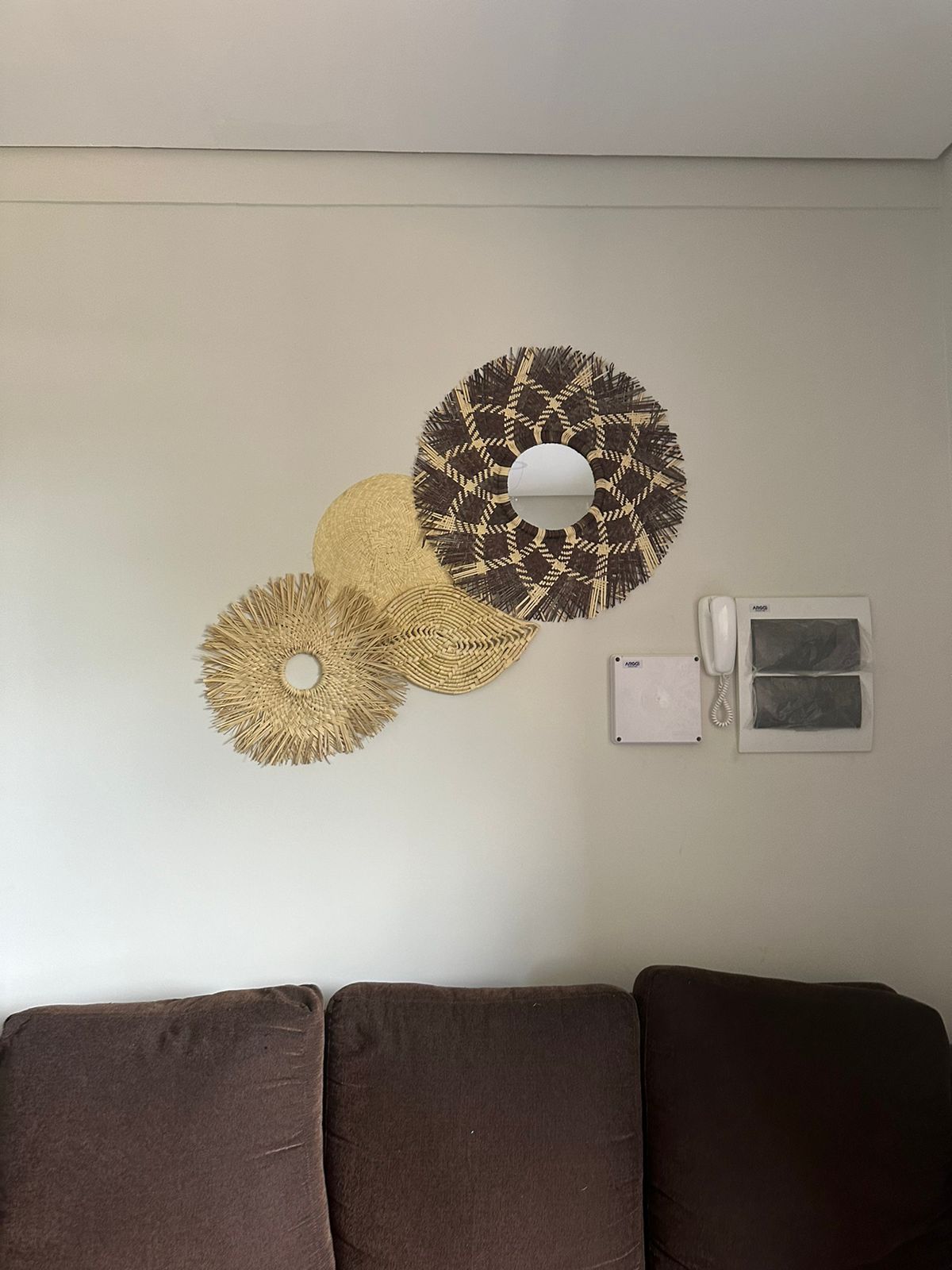 Mural compuesto de 4 piezas decorativas de Karanday con espejo de 20cm y 60cm de diametro total.