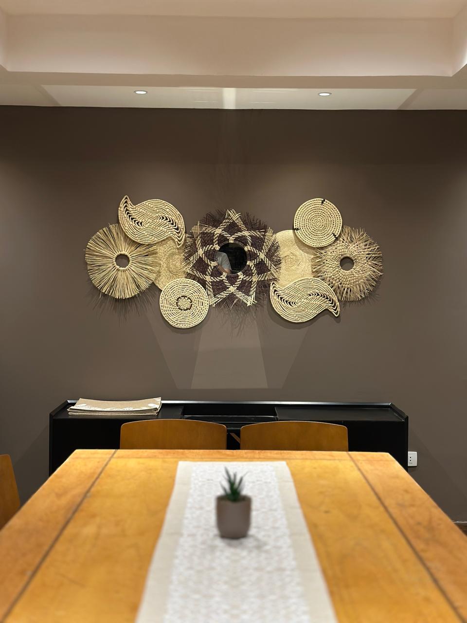 Su diseño combina tradición y modernidad: las técnicas artesanales se entrelazan con una propuesta estética contemporánea que convierte al mural en el punto focal de salas, comedores, oficinas o espacios de encuentro. Gracias a la nobleza de los materiales y la paleta de colores tierra, este mural transmite conexión con la naturaleza y una atmósfera acogedora.